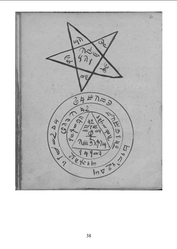Artis Nigromantica ~ Recueil de Nécromancie. Cet ouvrage s'inscrit dans notre série de traductions des textes de Magie Cabalistique Faustienne (Compendium Magicae Nigrae Vol.1 | Experimentum - Cabalae Nigrae). Il contient le Fac-simile du manuscrit intitulé Zauberhandschrift (Le Manuscrit Magique) ainsi que sa toute première Traduction française. Nous savons bien peu de choses sur l'origine de ce manuscrit, et son véritable auteur demeure toujours inconnu à ce jour. Cependant on peut estimer qu'il fut rédigé à la fin du XVIIIè siècle, époque ou la pratique de la Nécromancie comprenait notamment l'exhumation des trésors cachés. De par son contenu, nous pouvons aussi présumer qu'il fut rédigé en Allemagne ou dans une région germanophone. Tout le texte du manuscrit est crypté, cependant, le système de cryptage du texte est relativement simple; chaque caractère représentant une lettre latine. A la manière du Lemegeton, ou bien encore du Liber Officiorum Spirituum, le Zauberhandschrif dévoile toute une hiérarchie d'esprits ainsi que leurs offices respectifs, leurs sceaux et leurs conjurations. Au fil des pages se dessine alors une collection de sortilèges, ainsi que des invocations aux différents esprits qui seront appelés pour aider le praticien à la fois au sujet des choses matérielles, mais aussi pour des questions d’amour ou bien encore pour obtenir la guérison. Le texte en lui même contient un grand nombre de similitude avec le Nigromantisches Kunst-Buch publié par Johannes Scheible (sous le pseudonyme de Peter Hammer) tout particulièrement au sujet des conjurations et des apparences des différents esprits. Les invocations ainsi que les formules magiques présentent de nombreuses similitudes avec les formules invocatoires des contraintes infernales populaires germaniques, très en vogue au XVIIè et XVIIIè siècle et souvent attribuées à Johannes Faust. A vrai dire, il est fort probable que le Zauberhandschrif ait pu inspirer ou être une source textuelle pour Johannes Scheible. Enfin, on remarquera aussi sans trop de peine que certains passages du texte sont semblables en de nombreux points avec le texte contenu dans le Magia Naturalis et Innaturalis attribué à Johannes Faust. i. Introduction | 06 ii. Fac-simile | 09 iii. Table des permutations | 95 iv. Traduction | 96